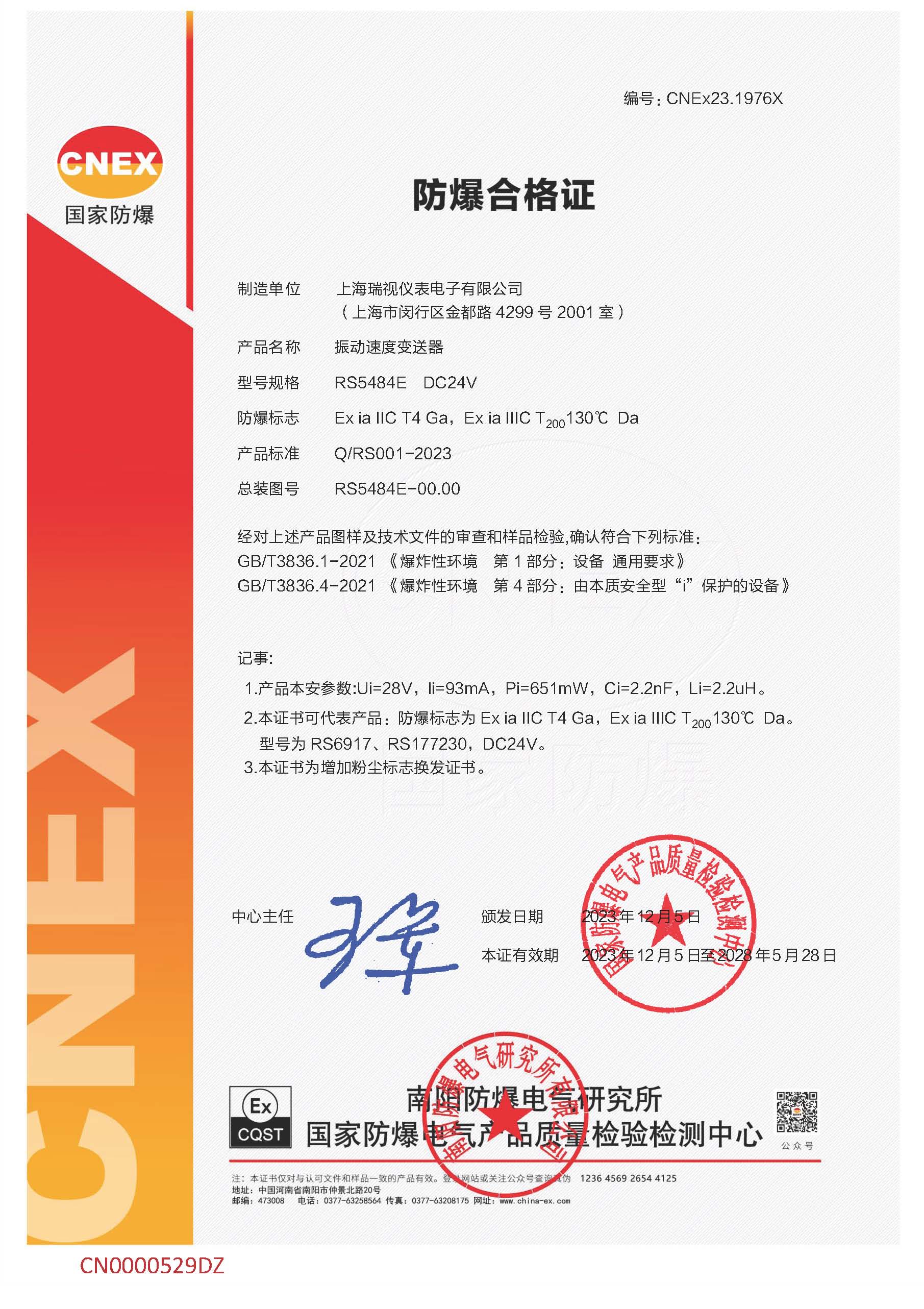 RS5484E/RS6917/RS177230防爆合格证