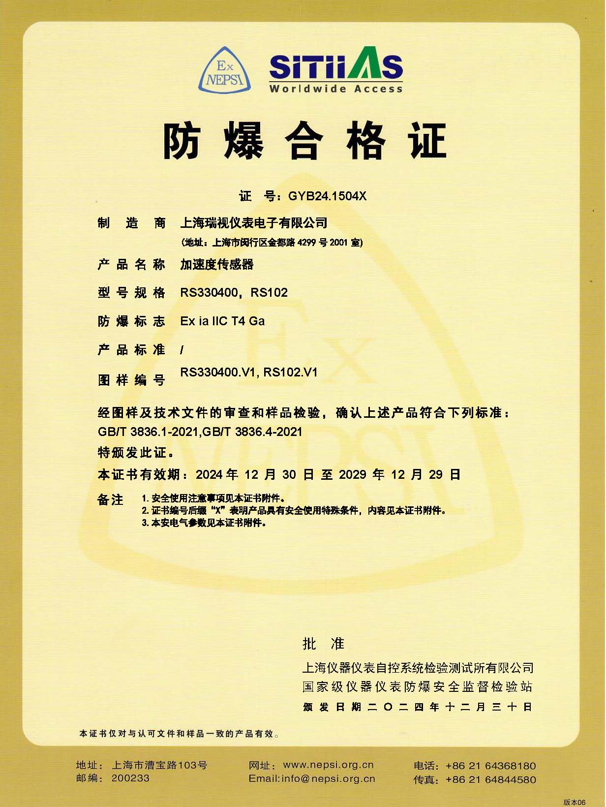 加速度传感器防爆合格证