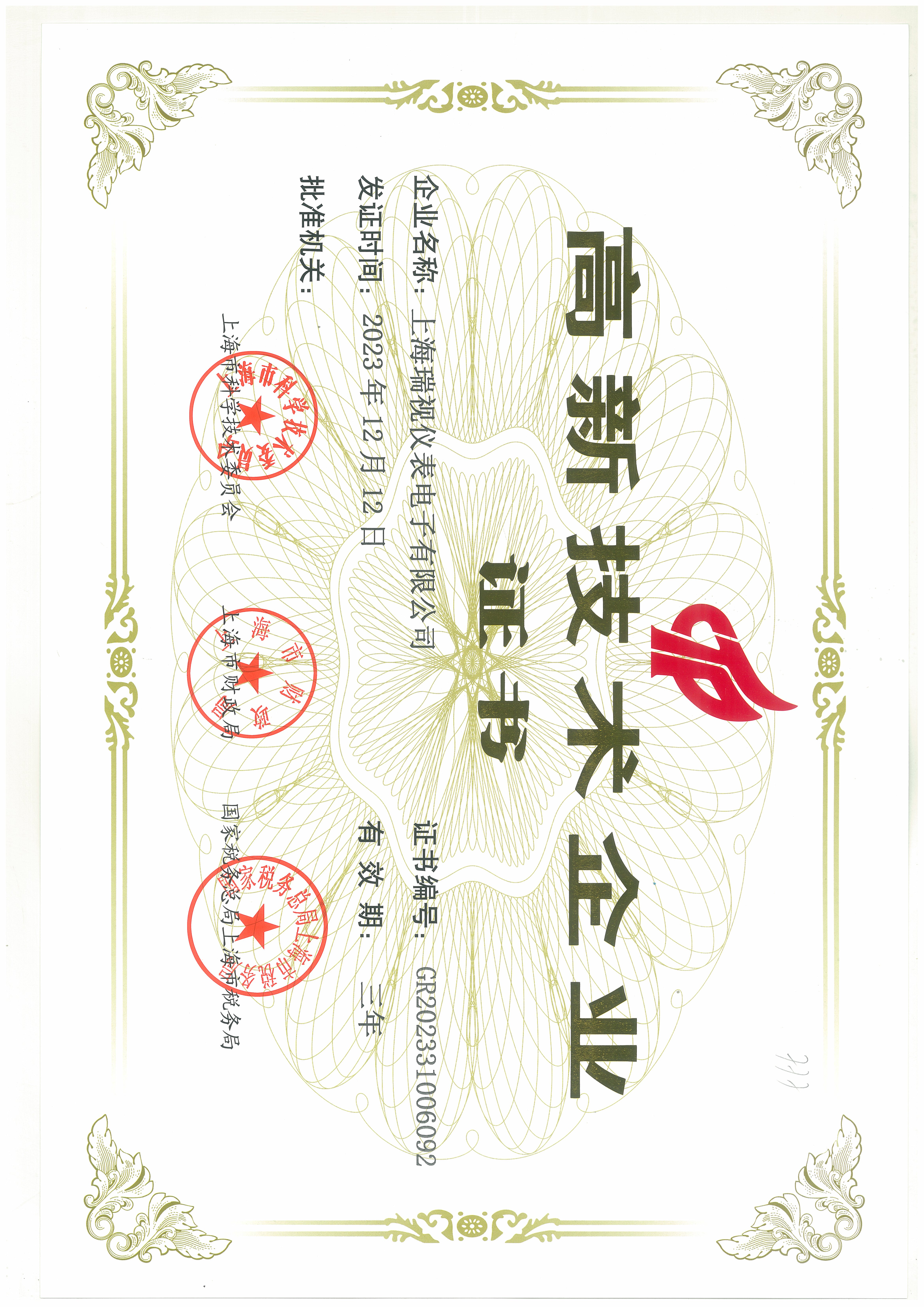高新技术企业证书