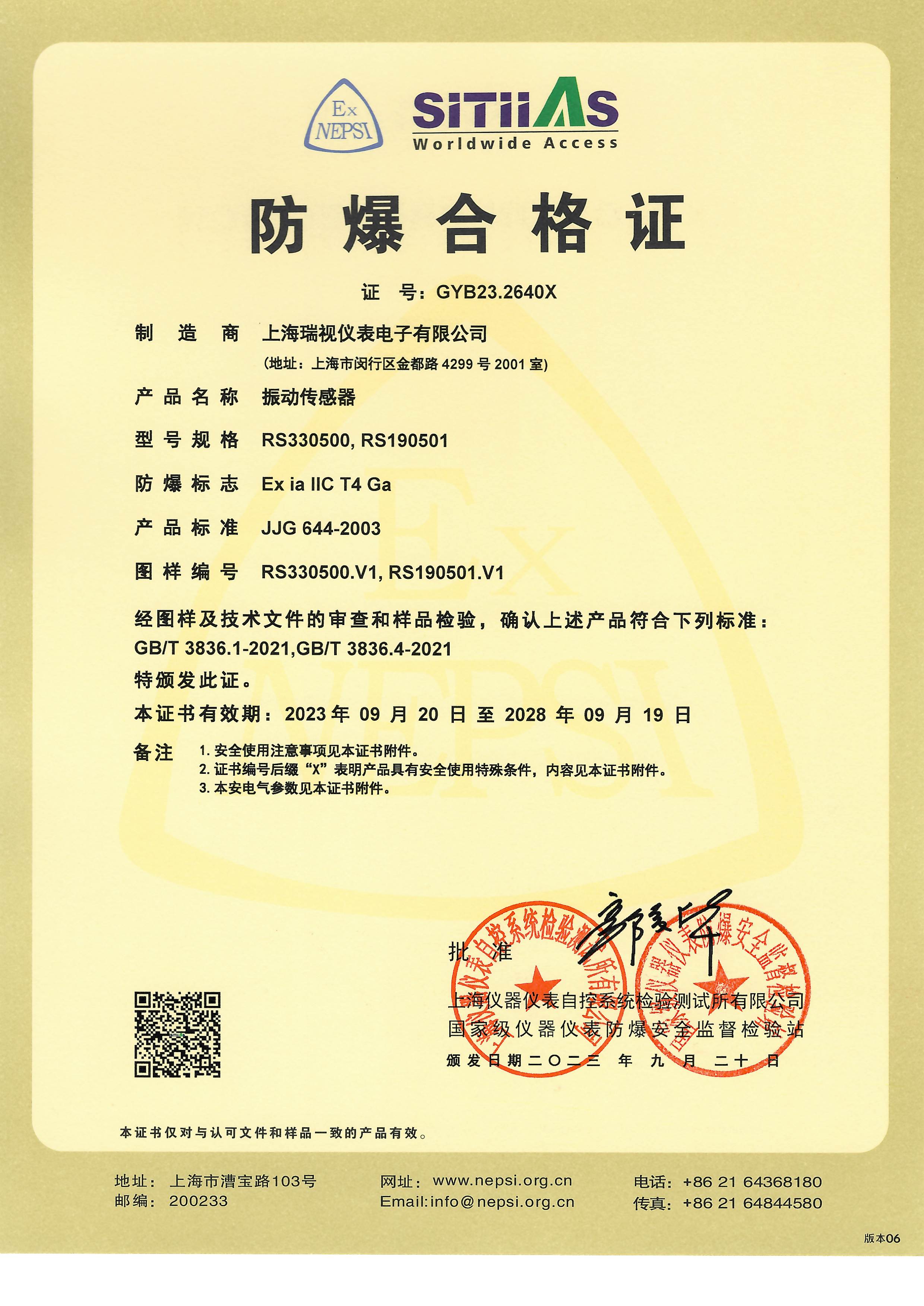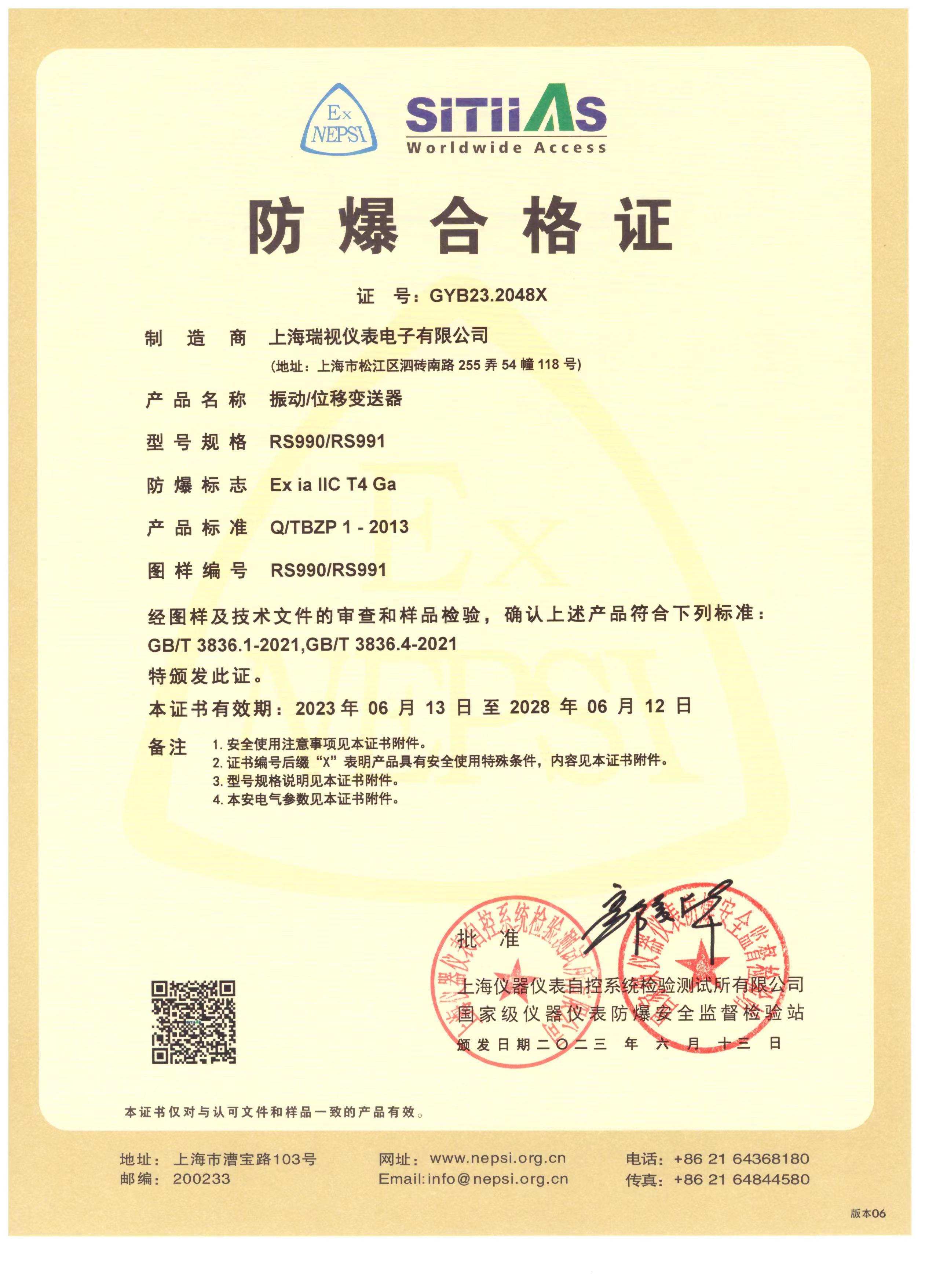 RS330500/RS190501防爆合格证